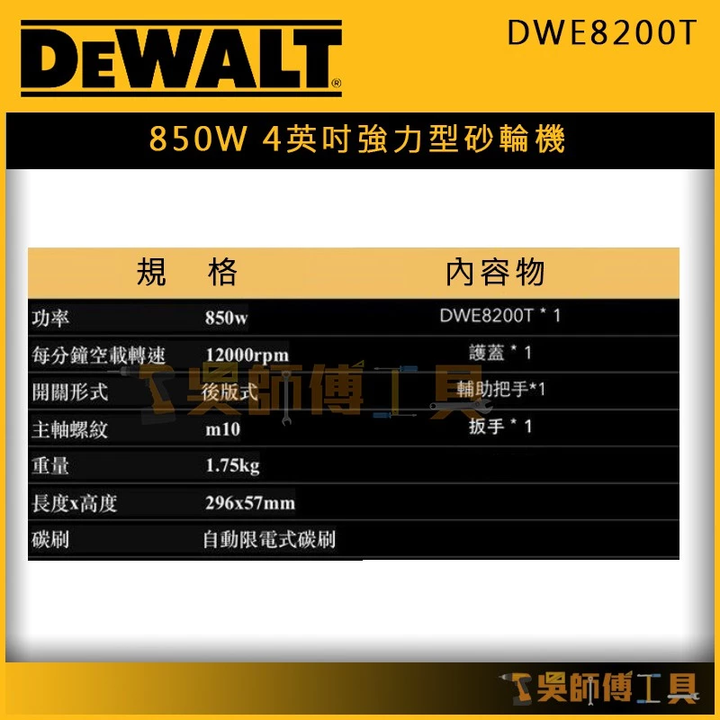 【DWE8200T】850W 4英吋強力型砂輪機(後日式開關)(細手柄設計)