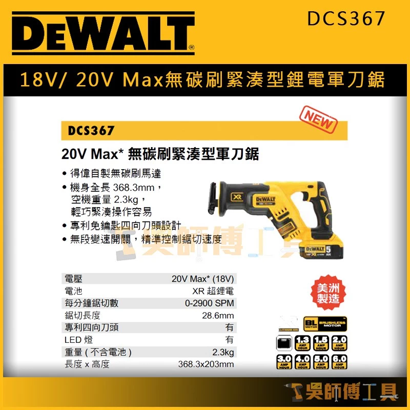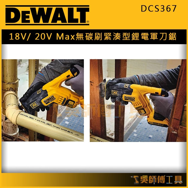【DCS367】18V/ 20V Max無碳刷緊湊型鋰電軍刀鋸(單機)