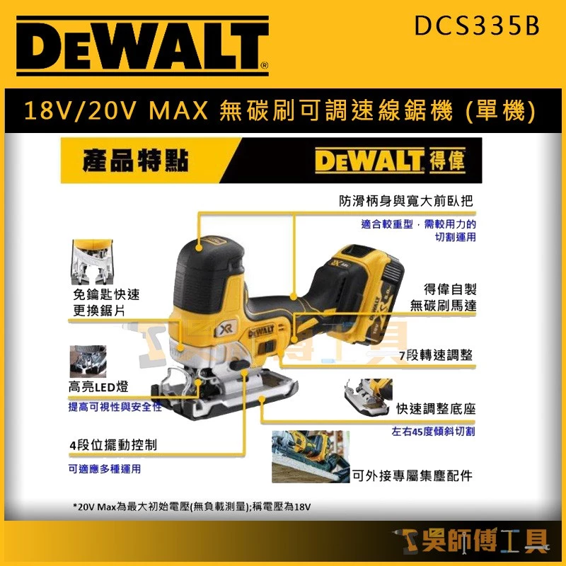 【DCS335B】18V/20V MAX無碳刷可調速線鋸機(單機()紙盒裝)