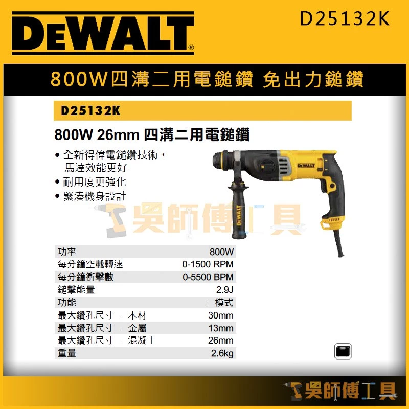 【D25132K】800W四溝二用電鎚鑽/免出力鎚鑽(工具盒裝)