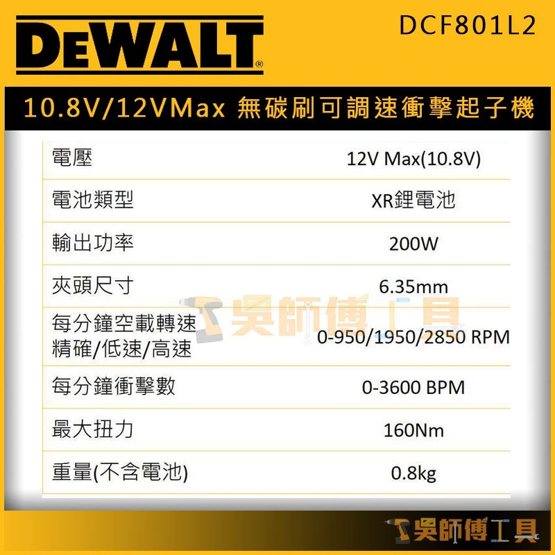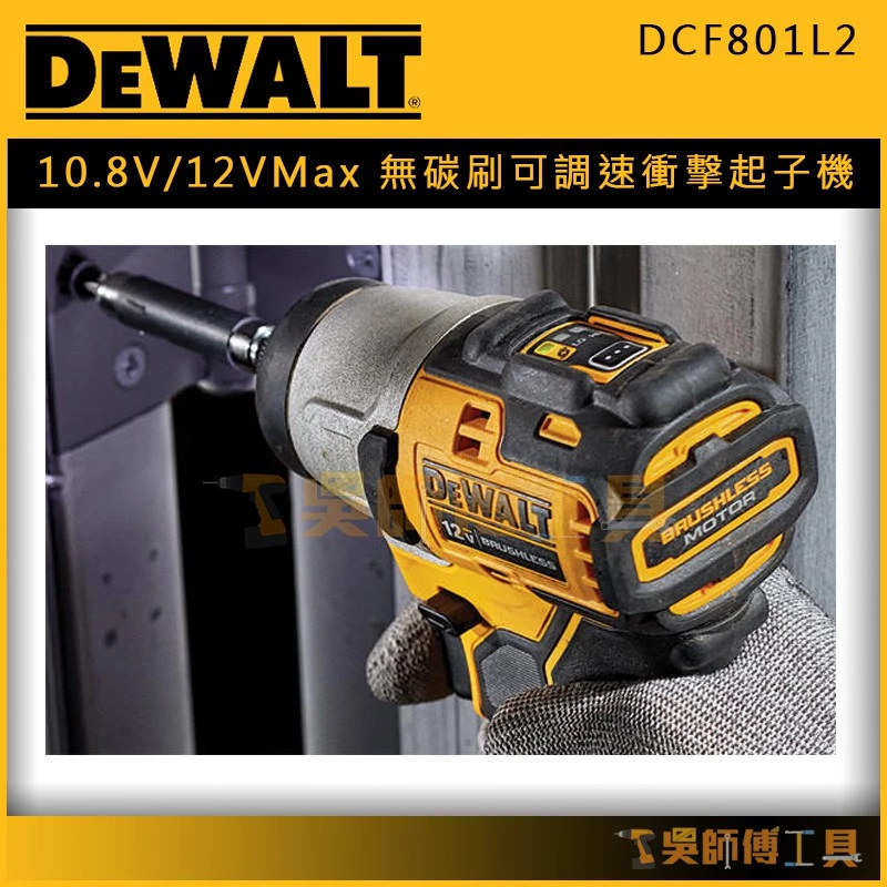 【 DCF801L2】10.8V/12VMax 無碳刷可調速衝擊起子機 (3.0Ah雙電)