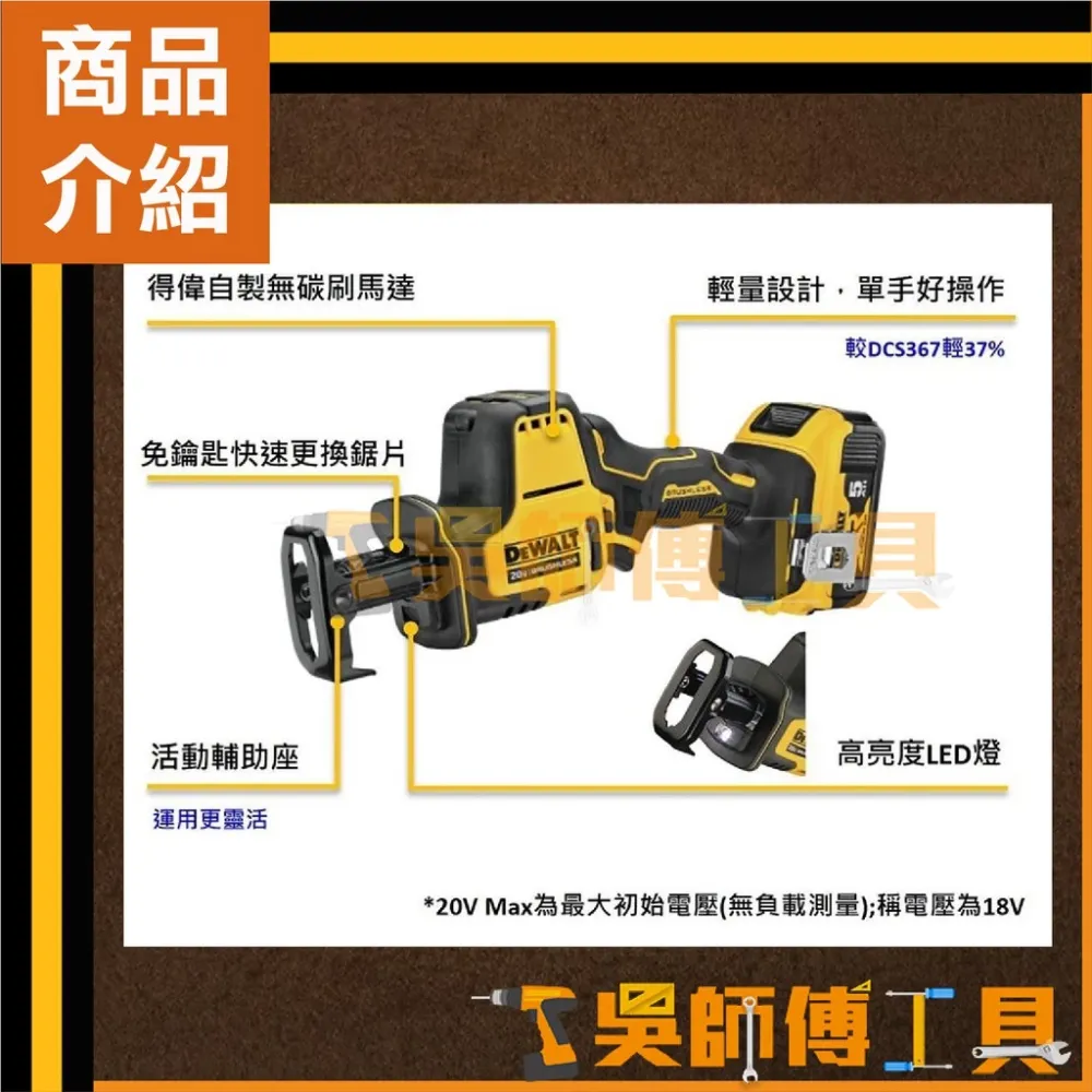 【DCS369】18V/20V無碳刷單手軍刀鋸(5.0AH*2)(變形金剛工具箱)