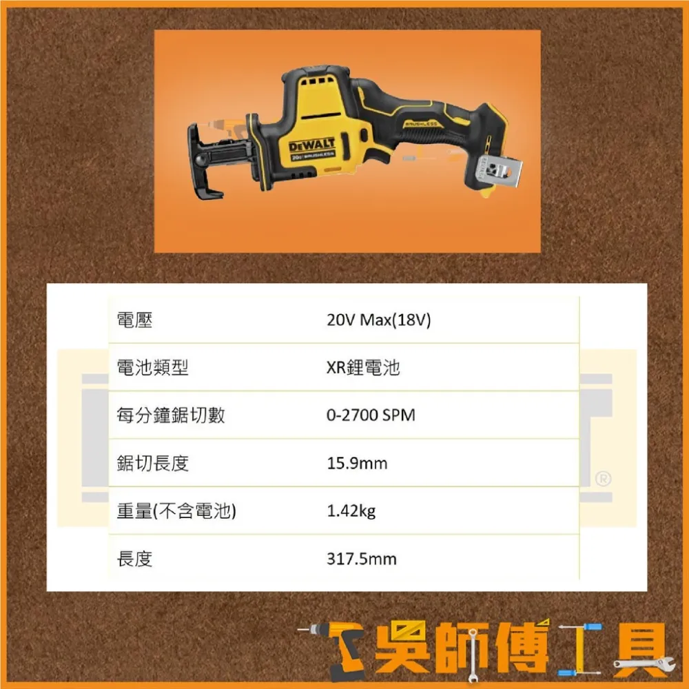 【DCS369】18V/20V無碳刷單手軍刀鋸(單機)(紙盒)