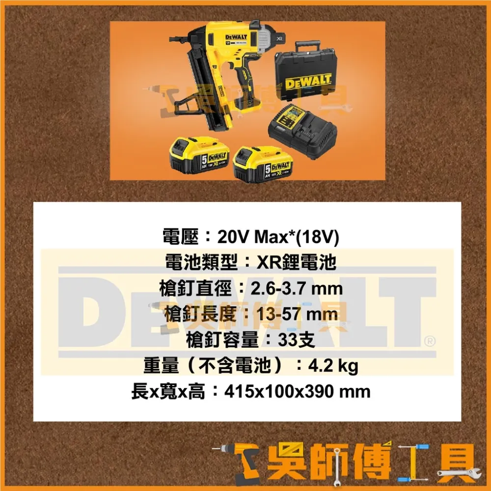【DCN890】18V/20V 無碳刷混凝土鋼梁釘槍/電動釘槍(5.0AH*2)