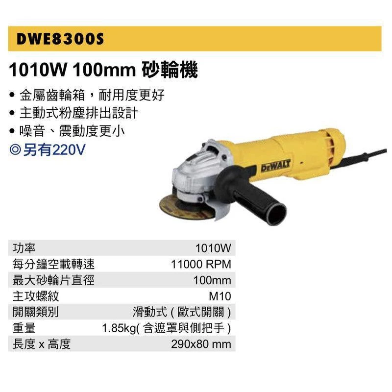 【DWE8300S】四英吋1010W平面砂輪機