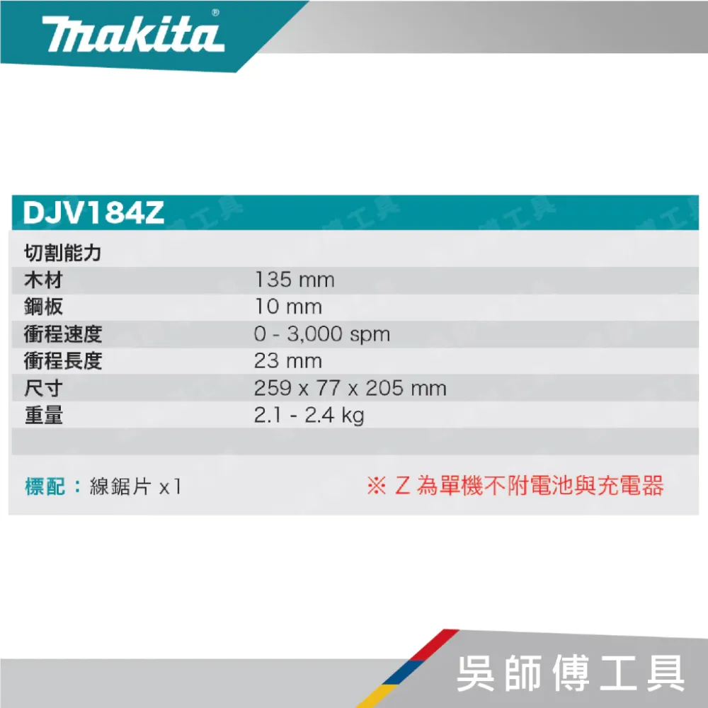 【DJV184】18V無刷手提線鋸機D型握把(單機)