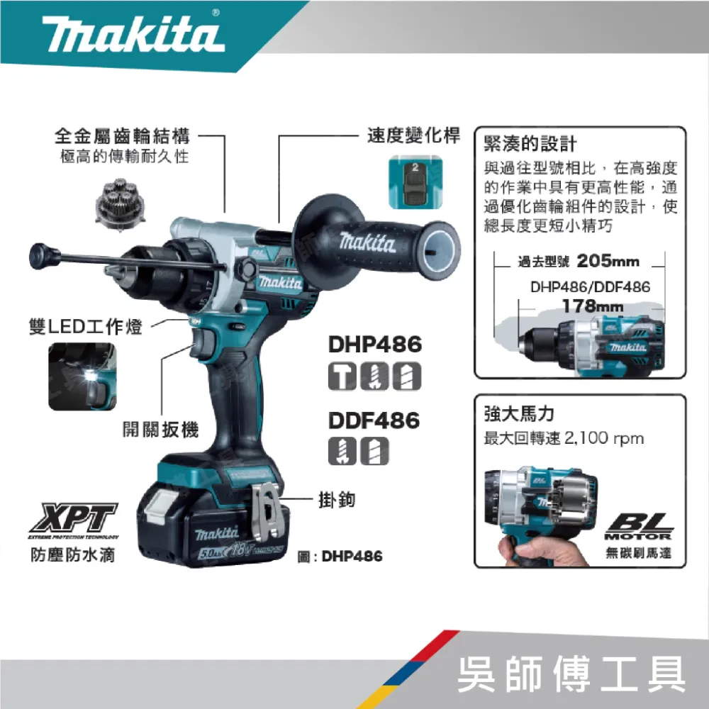 【DHP486】18V強力型無刷震動夾頭電鑽(主機)