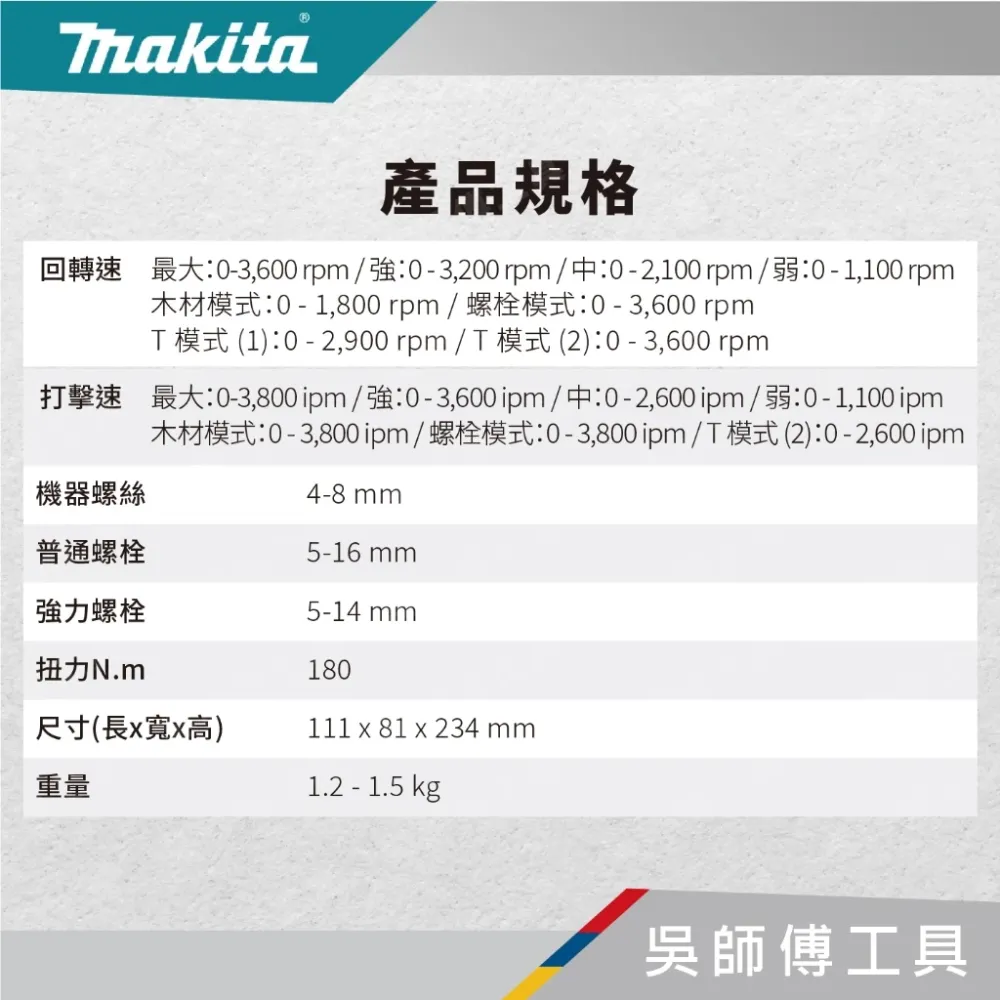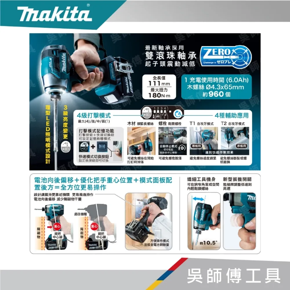 【DTD173】18V無刷衝擊起子機(牧田藍.綠.黑色)