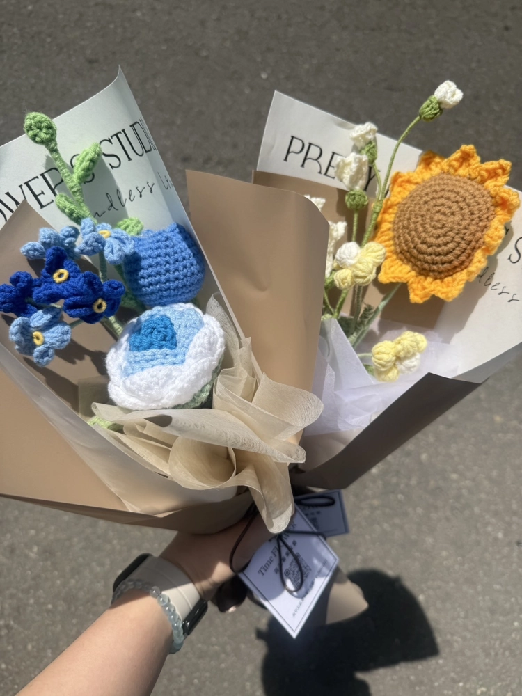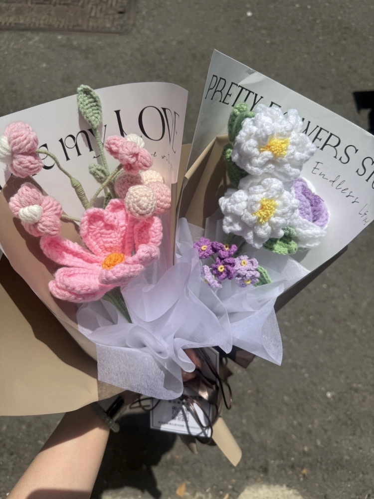 使用手工針織花材製作,每批除了顏色大小些許差異,偶爾會有一些小瑕疵等都是正常現象喔。