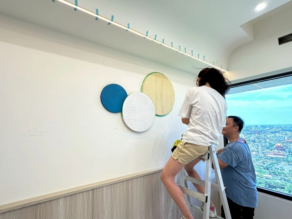 ・設計巧思:三個圓形大小不同,形成有節奏的視覺焦點,打破直線空間的單調感。