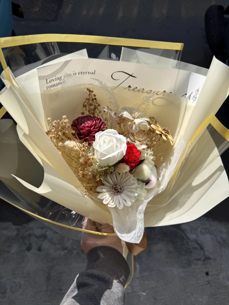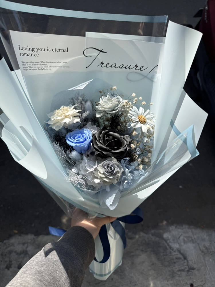 使用永生花材製作,每批除了顏色大小些許差異,偶爾會有一些花瓣小裂痕等都是正常現象喔。因為是真花去製作,所以不可能每朵跟假花一樣完美