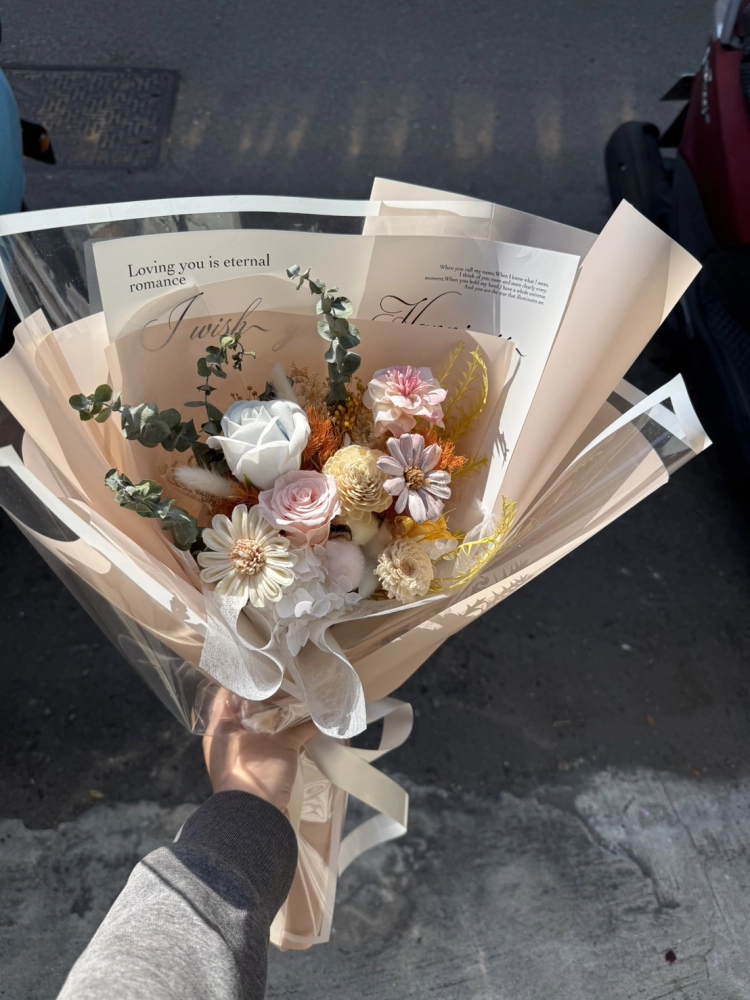 以不同色系搭配為主的永生乾燥花束, 每一束都是精心設計