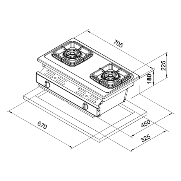 | 尺寸 | 705 X 450 X 235mm (含爐架) |