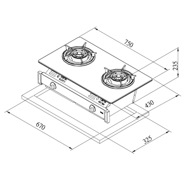 | 尺寸 | 750 x 430 x 235mm (含爐架) |