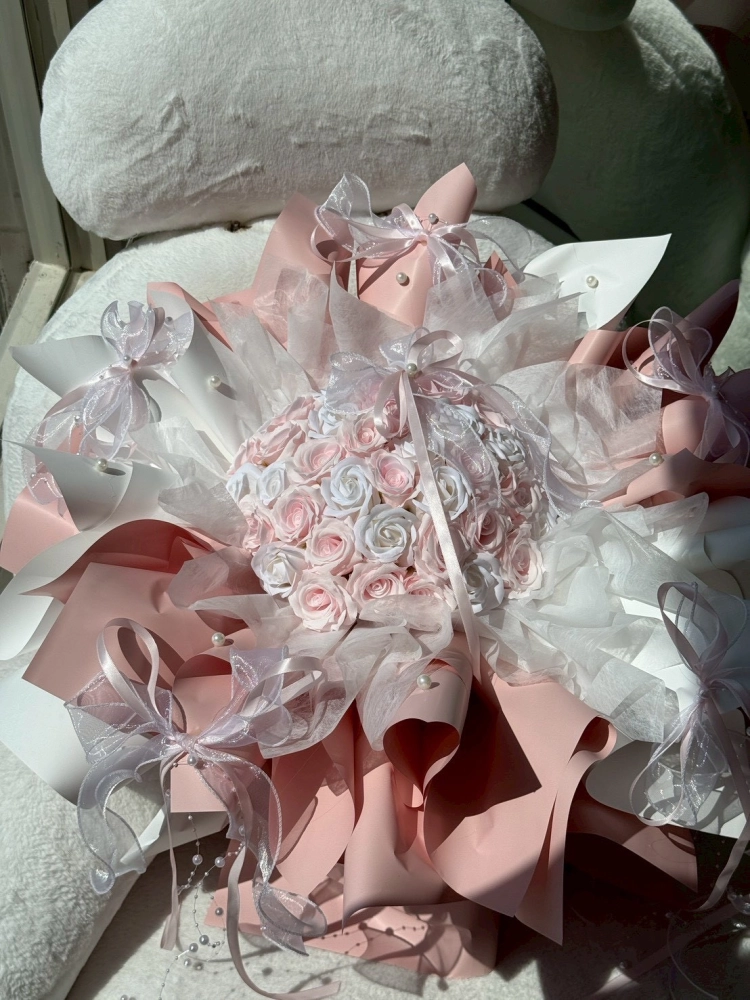 粉白交織的花海,像夢境裡的雲朵,一層一層堆疊著浪漫與真心。