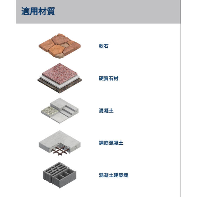 ●以 4 刀頭切削機全鎢鋼硬質合金頭打穿鋼筋混凝土