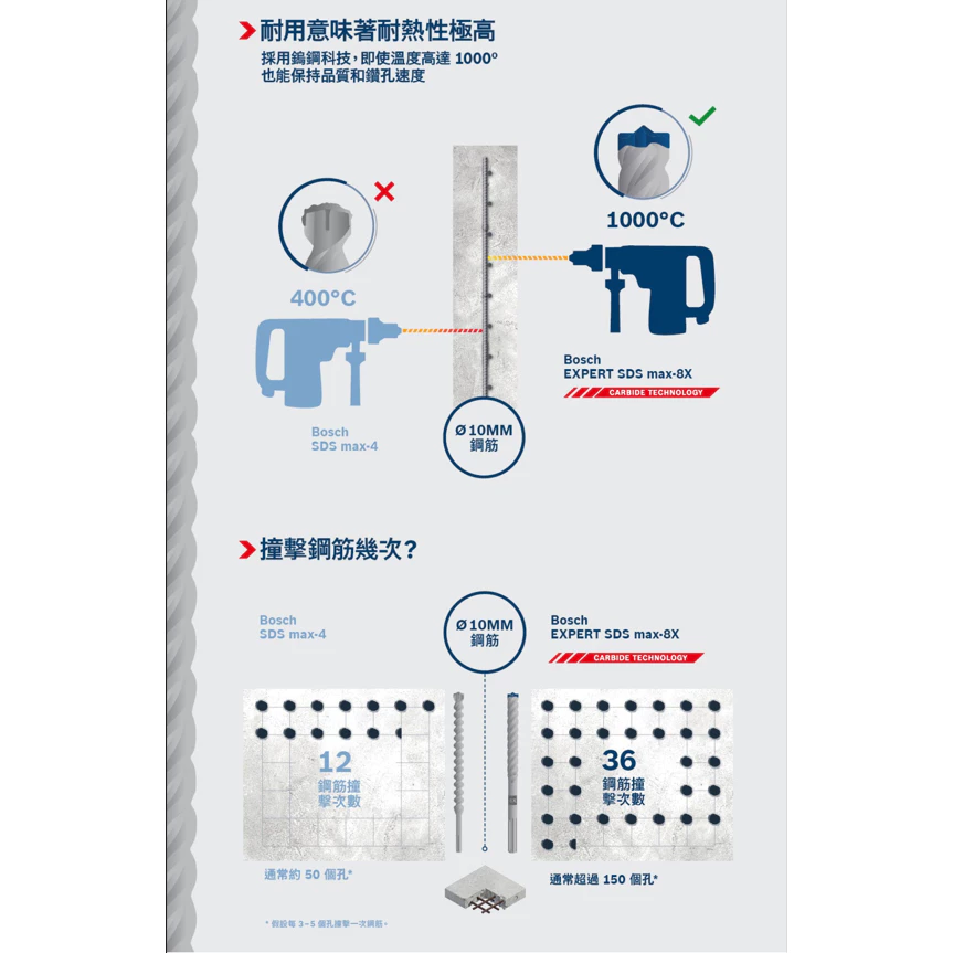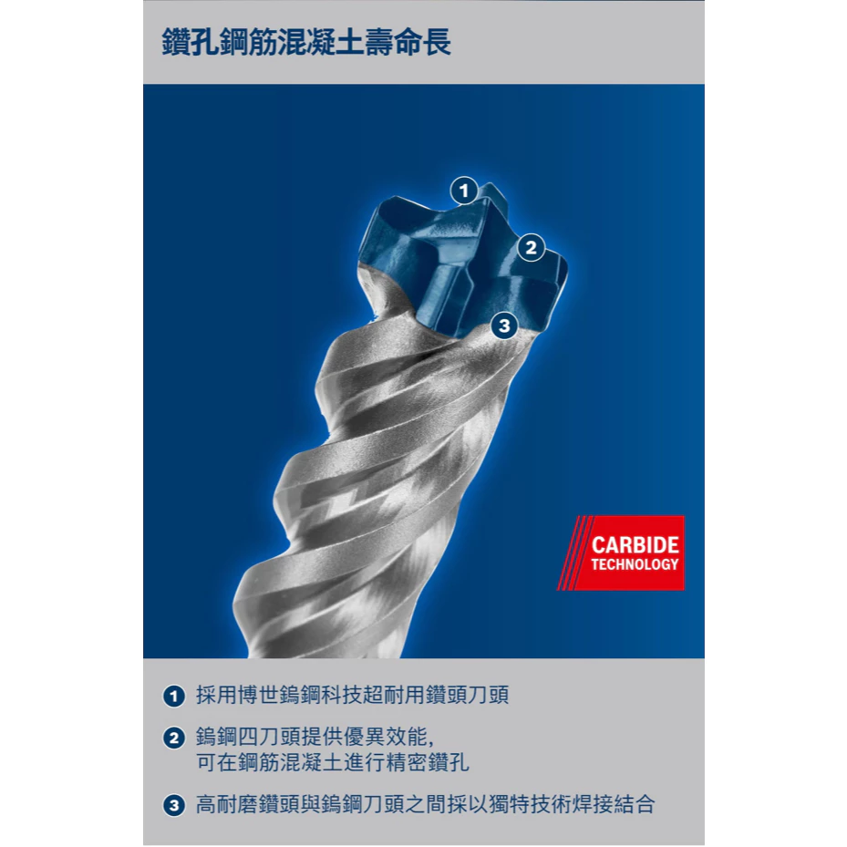 ●採用 Bosch 特殊焊接工藝的高耐磨鑽頭連接
