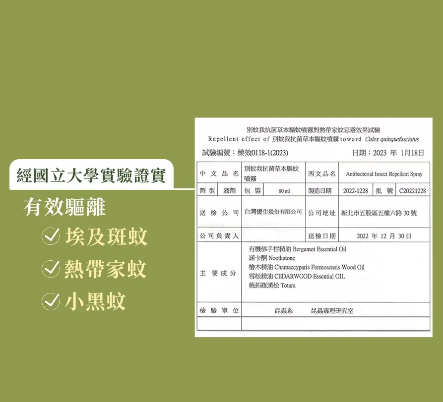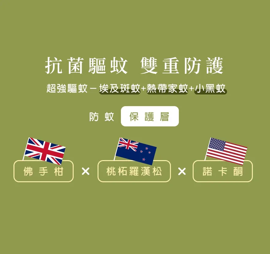 具99.9%抗菌與驅離埃及斑蚊、熱帶家蚊、小黑蚊雙效升級配方