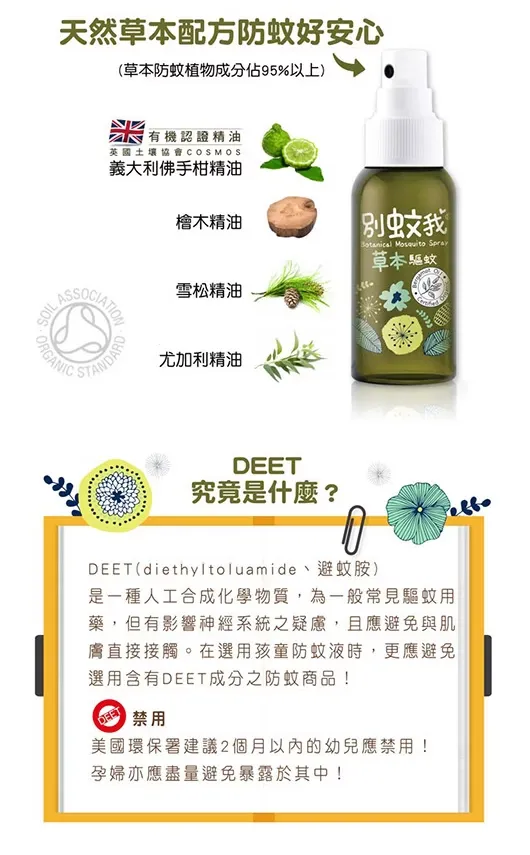 ●超安心配方-不含Paraben防腐劑、DEET(敵避)、樟腦油、人工香料及色素,可安心使用。