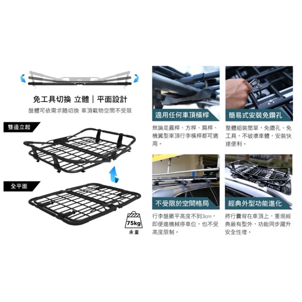 🚗便利式固定座設計,可快速、輕鬆安裝於各廠牌行李架使用。