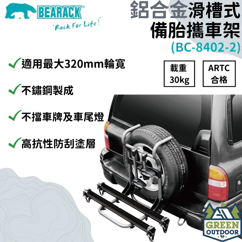 【綠色工場】Bearack 熊牌 BC-8402 鋁合金滑槽式備胎攜車架 腳踏車架 車頂架 行李架 繫車架 台灣製