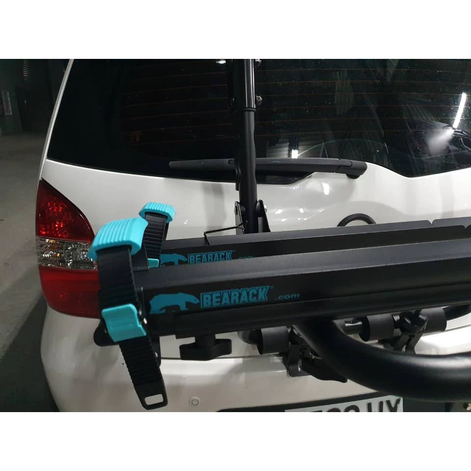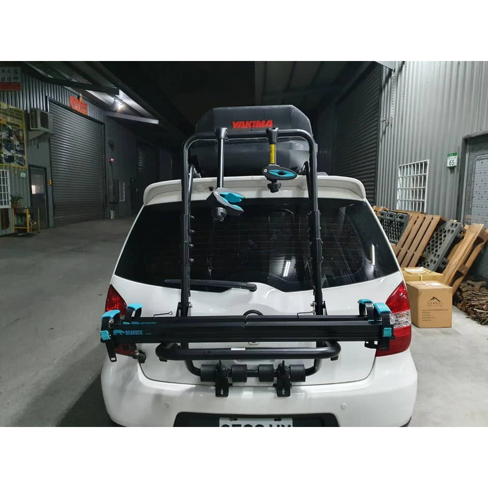 👉熊牌的後背式攜車架,附防盜鎖,可攜二台自行車,攜車架安裝後,後門一樣可以開啟拿車內的物品,平時不載自行車時可以收折起來,拆裝簡便容易。
