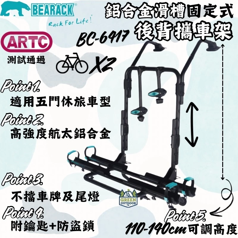 Bearack 熊牌 SUV鋁合金滑槽固定式後背攜車架(附鎖)【綠色工場】BC-6417 腳踏車架 車頂架 行李架