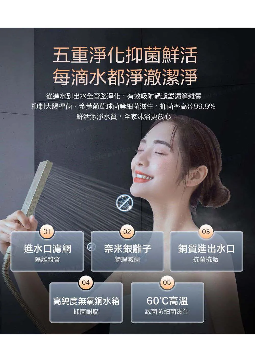 • 全方位多重防護:安全自檢系統,守護浴沐安全