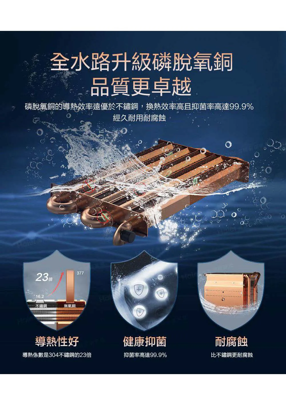 • 密閉穩燃艙+高純度無氧銅換熱器:加熱效率高、更穩燃、更恆溫、更安全節能