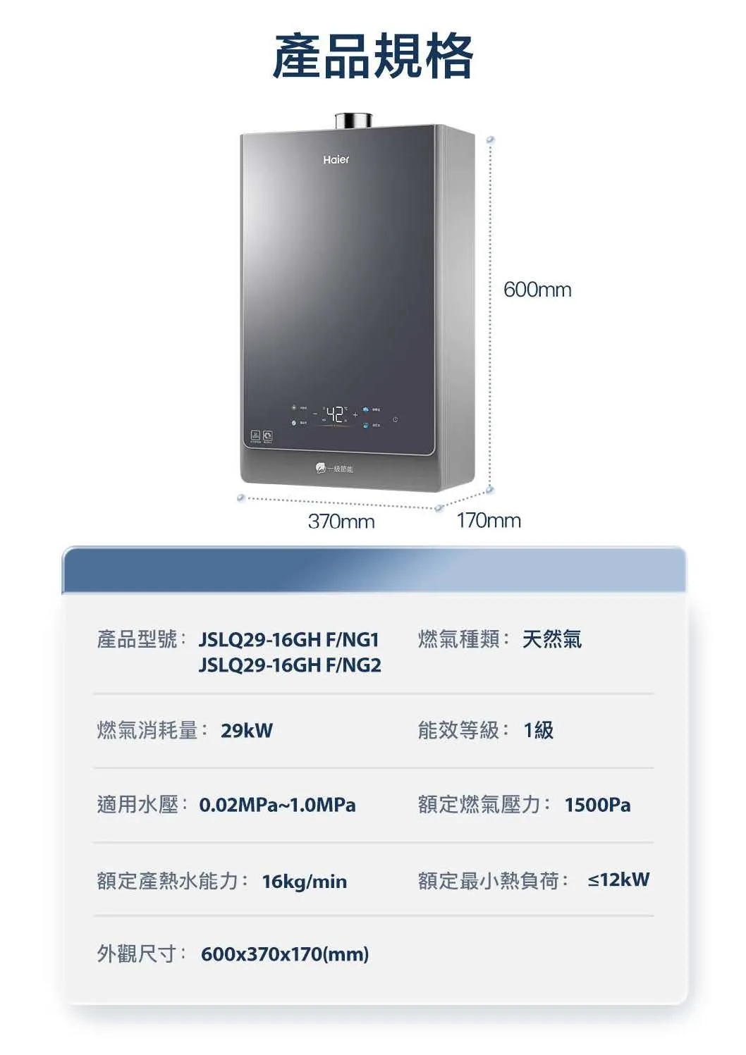 • 通過一級能效實驗檢測,熱效率90%up,更加節能