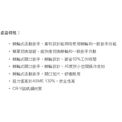 2.世界專利設計,同時使用棘輪和一般扳手功能。