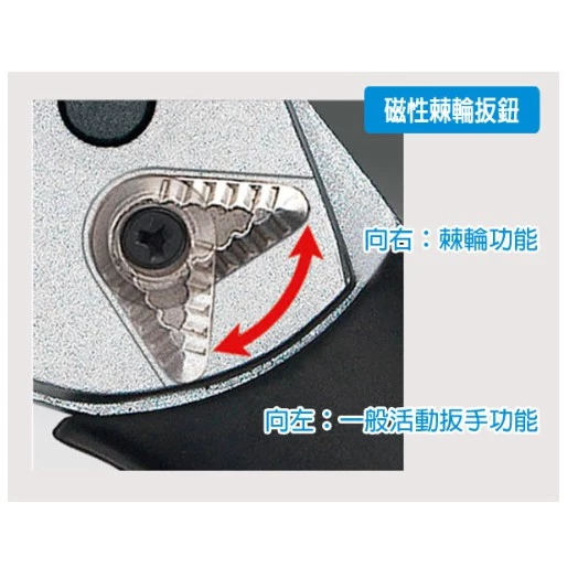 3.簡單切換旋鈕,快速切換棘輪和一般扳手作動。