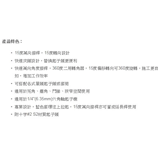 1.15度轉向設計快速夾頭設計,替換起子頭更便利