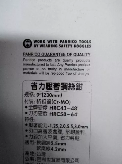 #橋輝#橋輝五金#台灣製#全新#百利世 #Panrico#9吋省力壓著鋼絲鉗 #手工工具 #鉗子#FM904009A