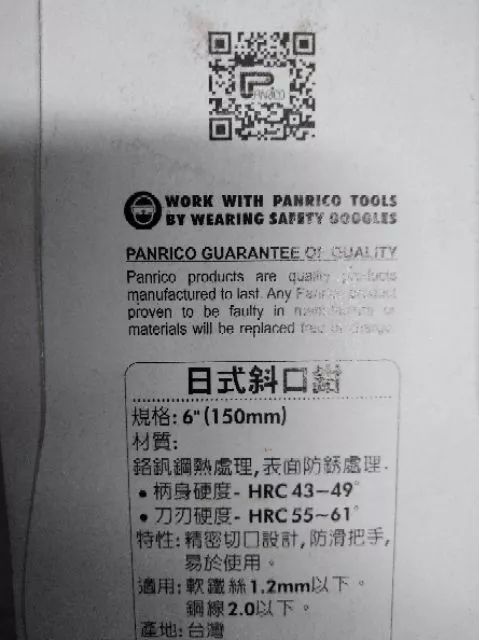 #橋輝#橋輝五金#全新#台灣製#百利世 #Panrico #6吋 #日式斜口鉗#FM902106