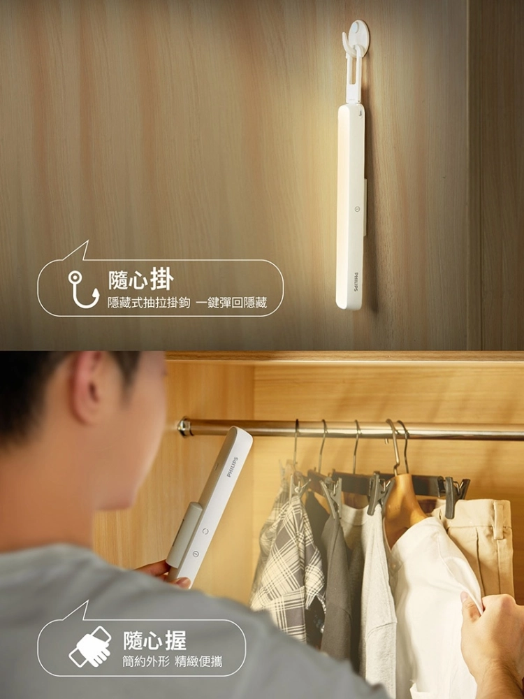 隨處可掛的隱藏式抽拉掛勾,一鍵彈回隱藏