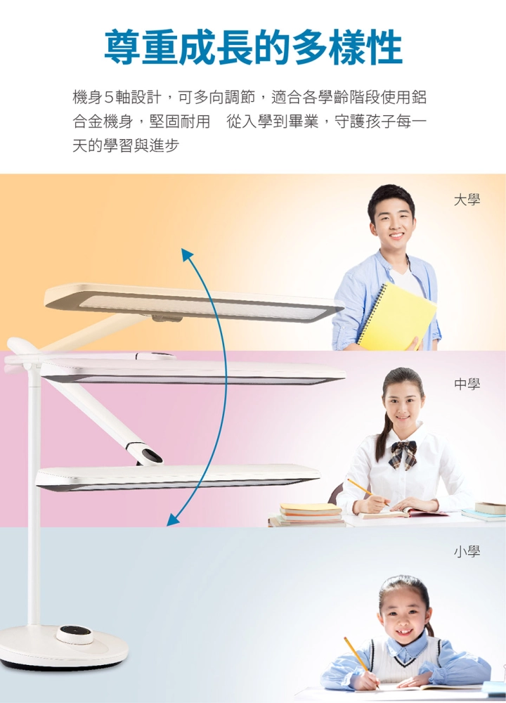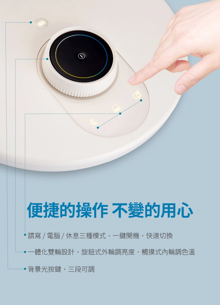 商品國際牌 無藍光 LED 7.5W檯燈 雙軸旋轉 觸控檯燈 灰色HH-LT0611P09