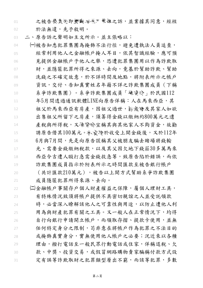 本件原告主張被告侵權之事實,業據其提出與所述相符之Line對話紀錄、帳戶交易明細、新北市政府警察局新莊分局光華派出所受(處)理案件證明單、有限公司變更事項登記卡、戶籍謄本、臺灣桃園地方法院113年金訴字第44號判決、臺灣臺中地方檢察署檢察官起訴書(見本院卷第25至57、97至111、279至340頁)等件為證,並有本院依職權調閱附表所示帳戶之交易明細及警示資料(見本院卷第171至197頁)在卷可稽,並為被告鈺淩諾有限公司所自認,被告家盈公司亦承認有收到原告匯出之款項等語,自堪信為真實。