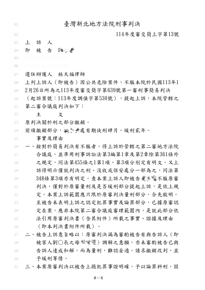• 協助肇事逃逸的客戶與被害人達成調解,使客戶取得緩刑,讓客戶不用有前科