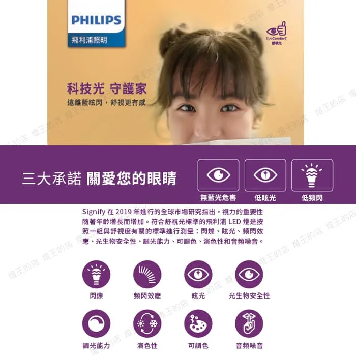 ● 飛利浦舒視光技術:無藍光危害、低頻閃、低眩光
