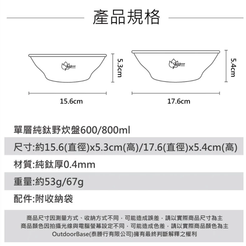 【綠色工場】Outdoorbase 野夫炊煙 單層純鈦野炊盤 鈦碗 飯碗 摺疊碗 收納碗 露營碗 鈦金屬 露營 野營登山