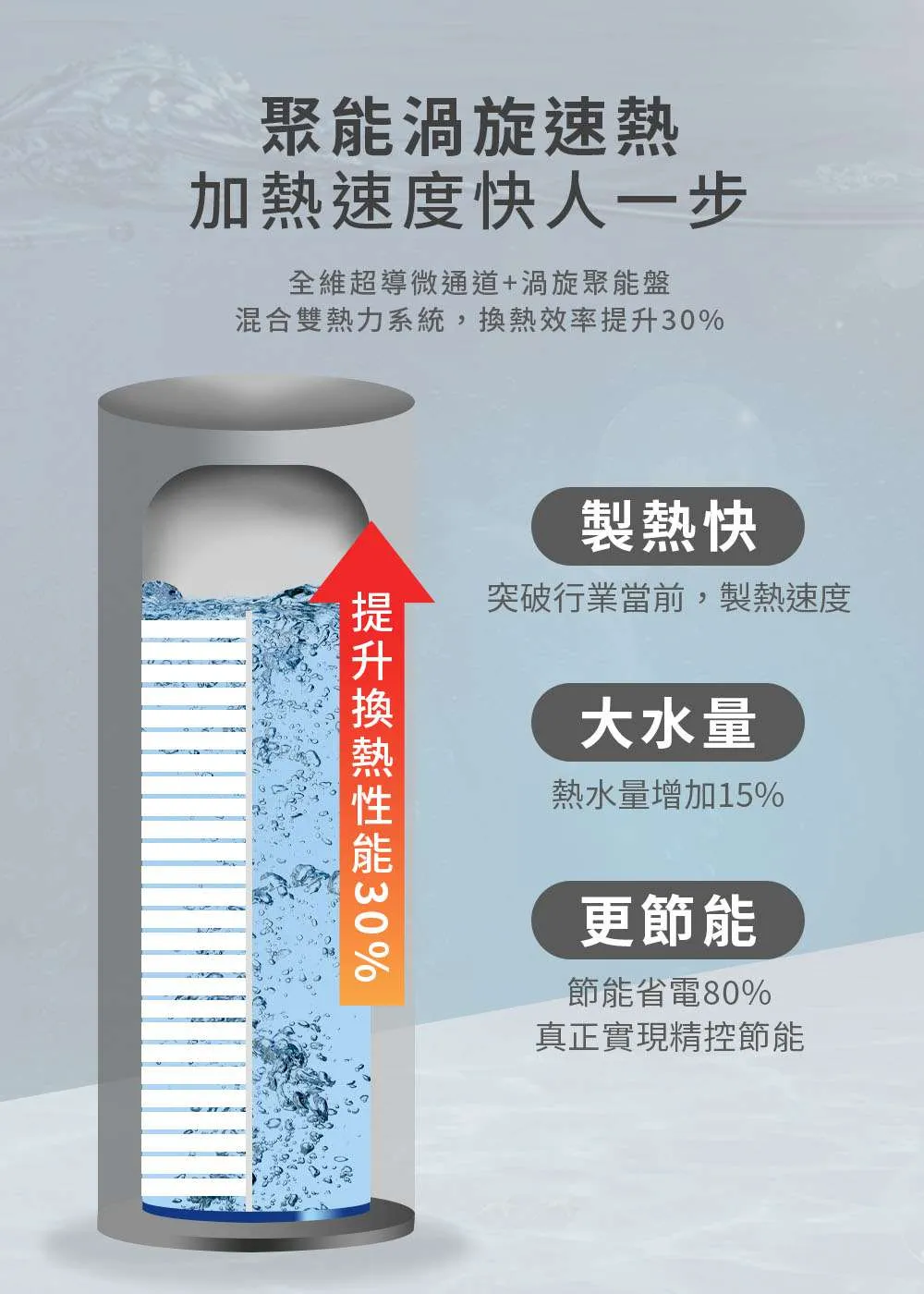 • 全維超導系統:雙效加熱製熱快,換熱效率更提升、更節能