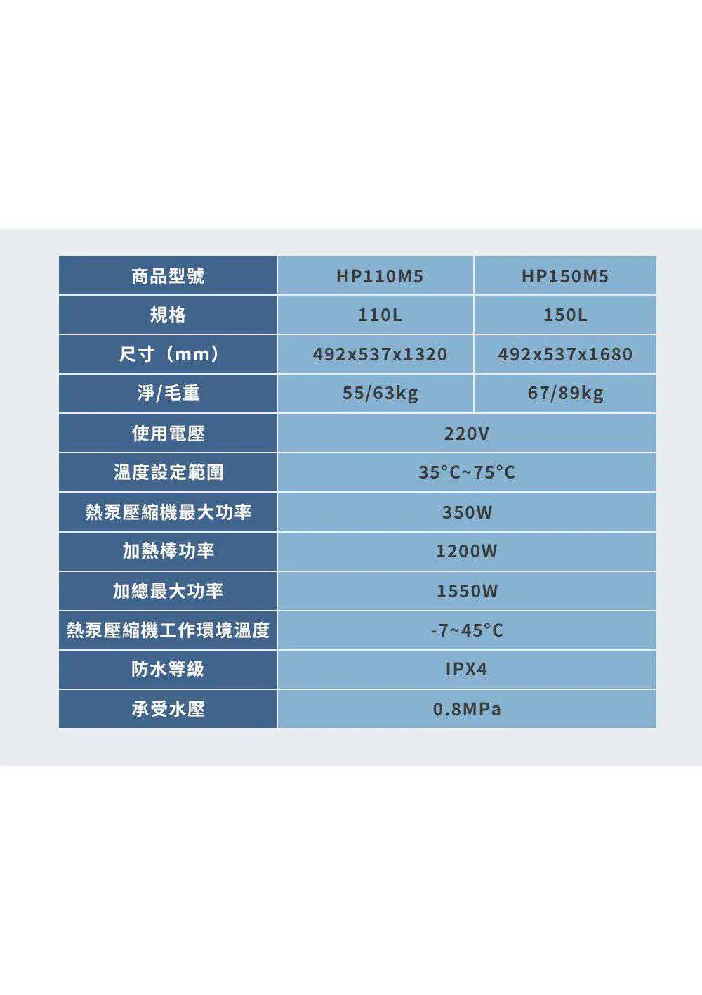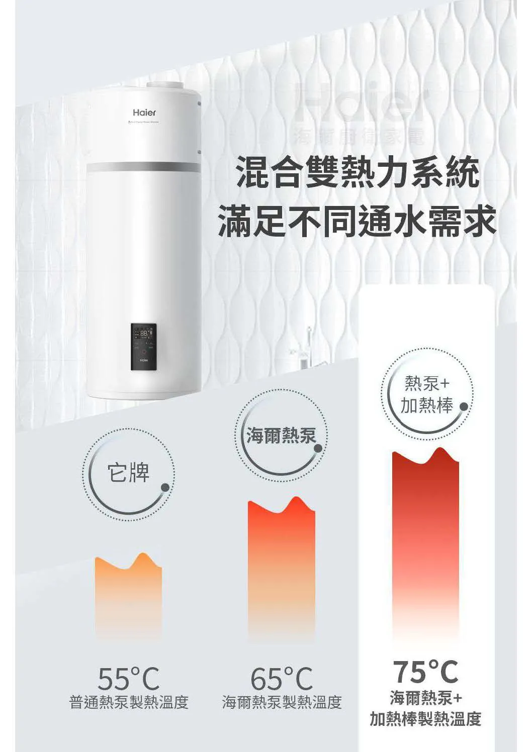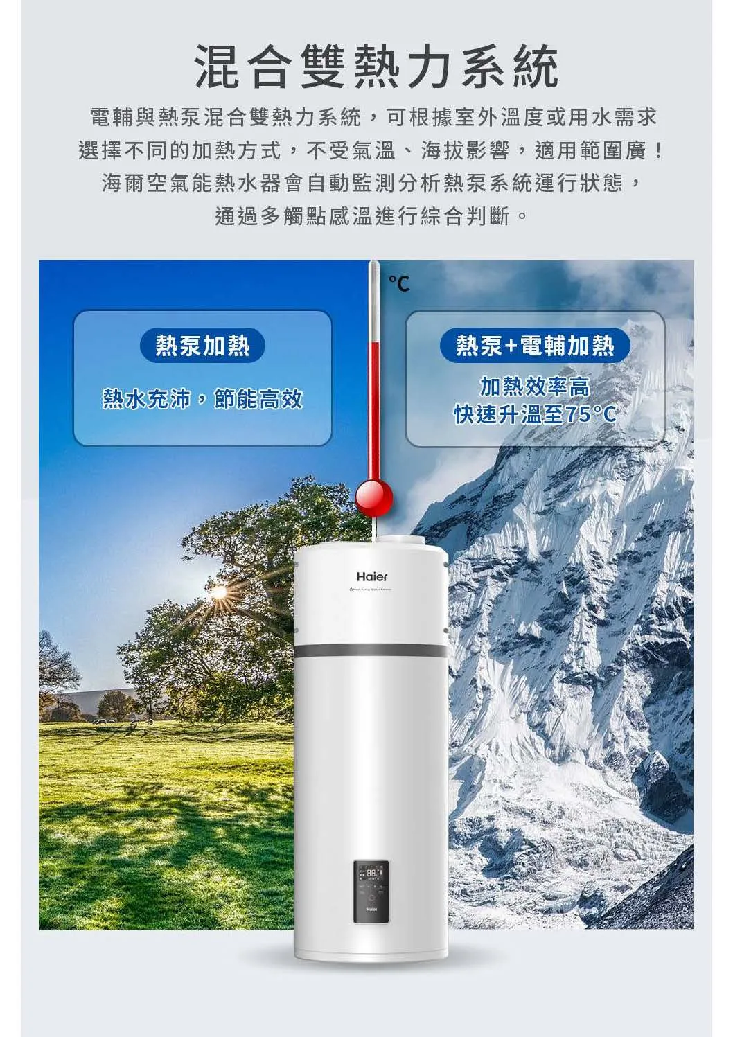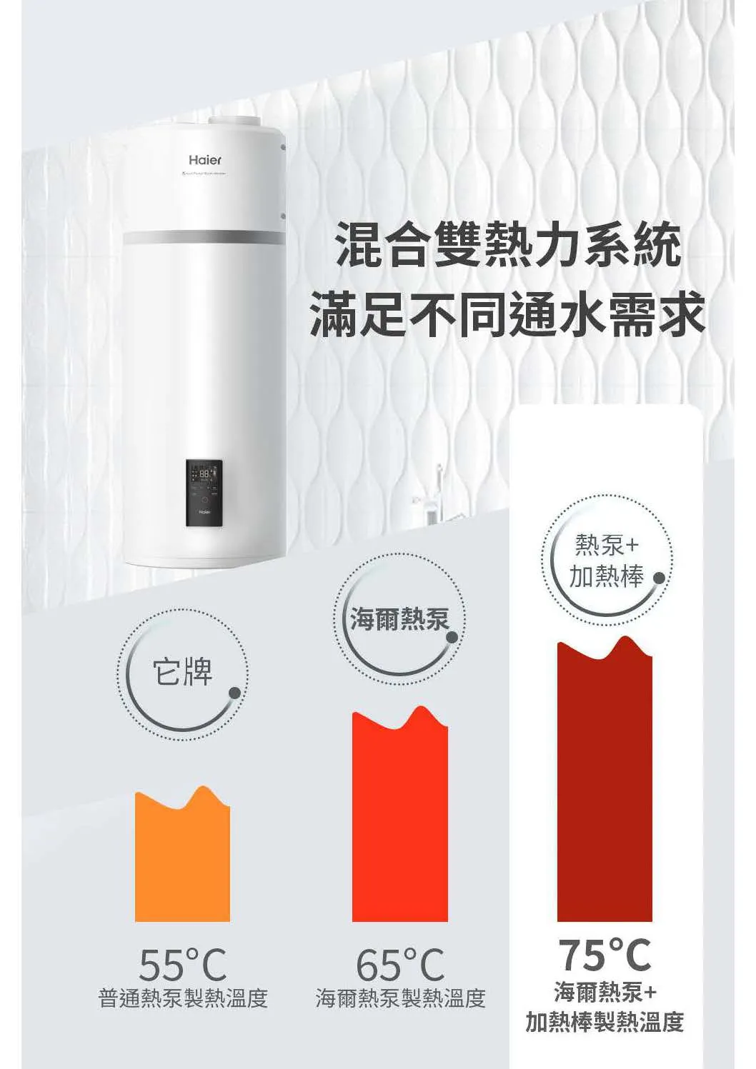 • 混和雙熱力系統:電熱輔助與熱泵雙熱力,節省等待時間