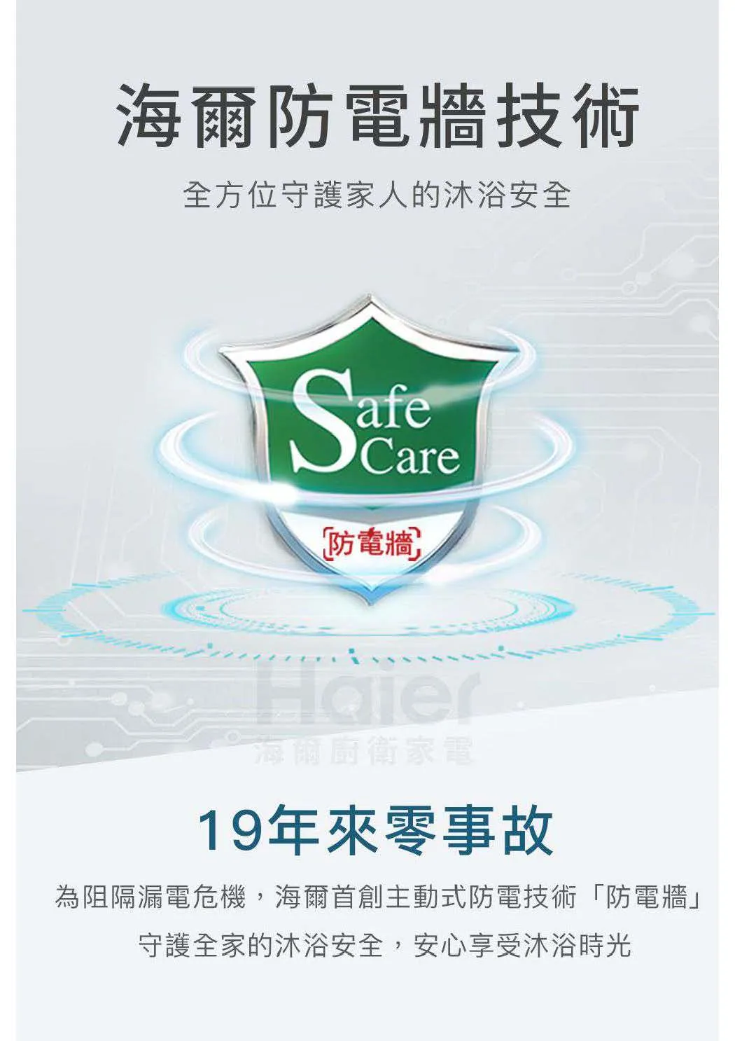 • 獨步全球的防電牆技術,阻隔漏電危機,內建SafeCare監測預警系統,偵測家中其他電器漏電安全