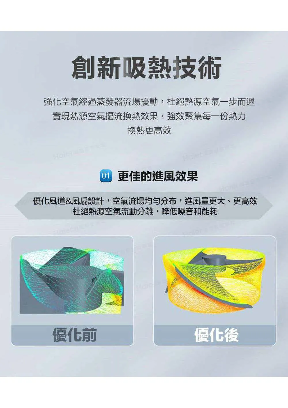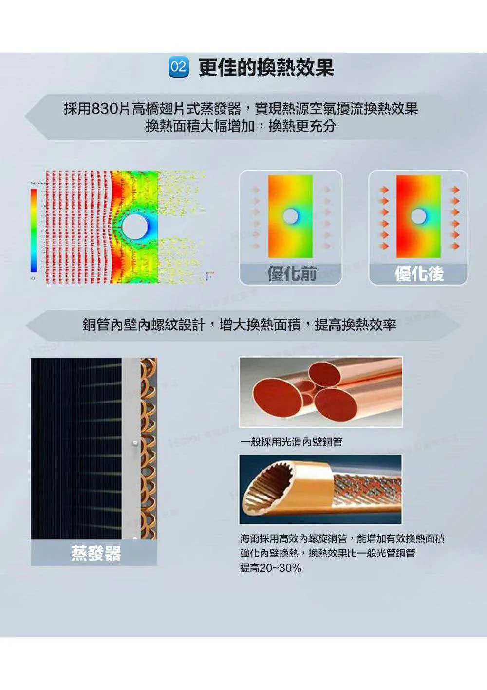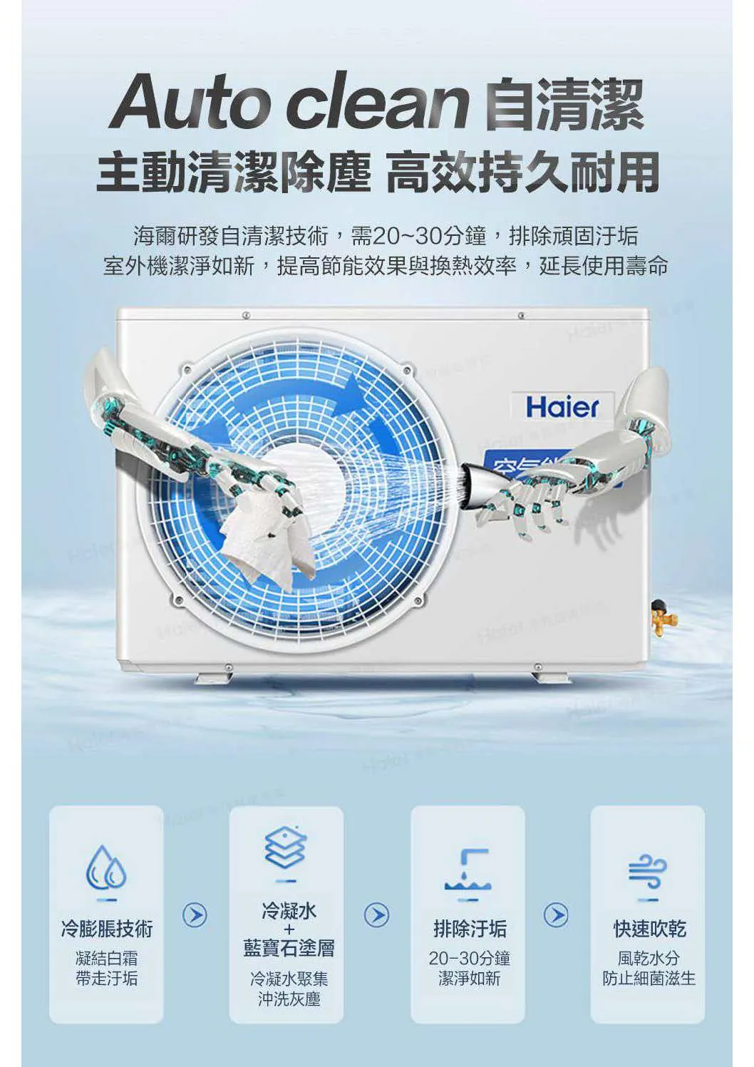 • 自凍潔科技:自動開啟自清潔功能,提高節能、換熱效率