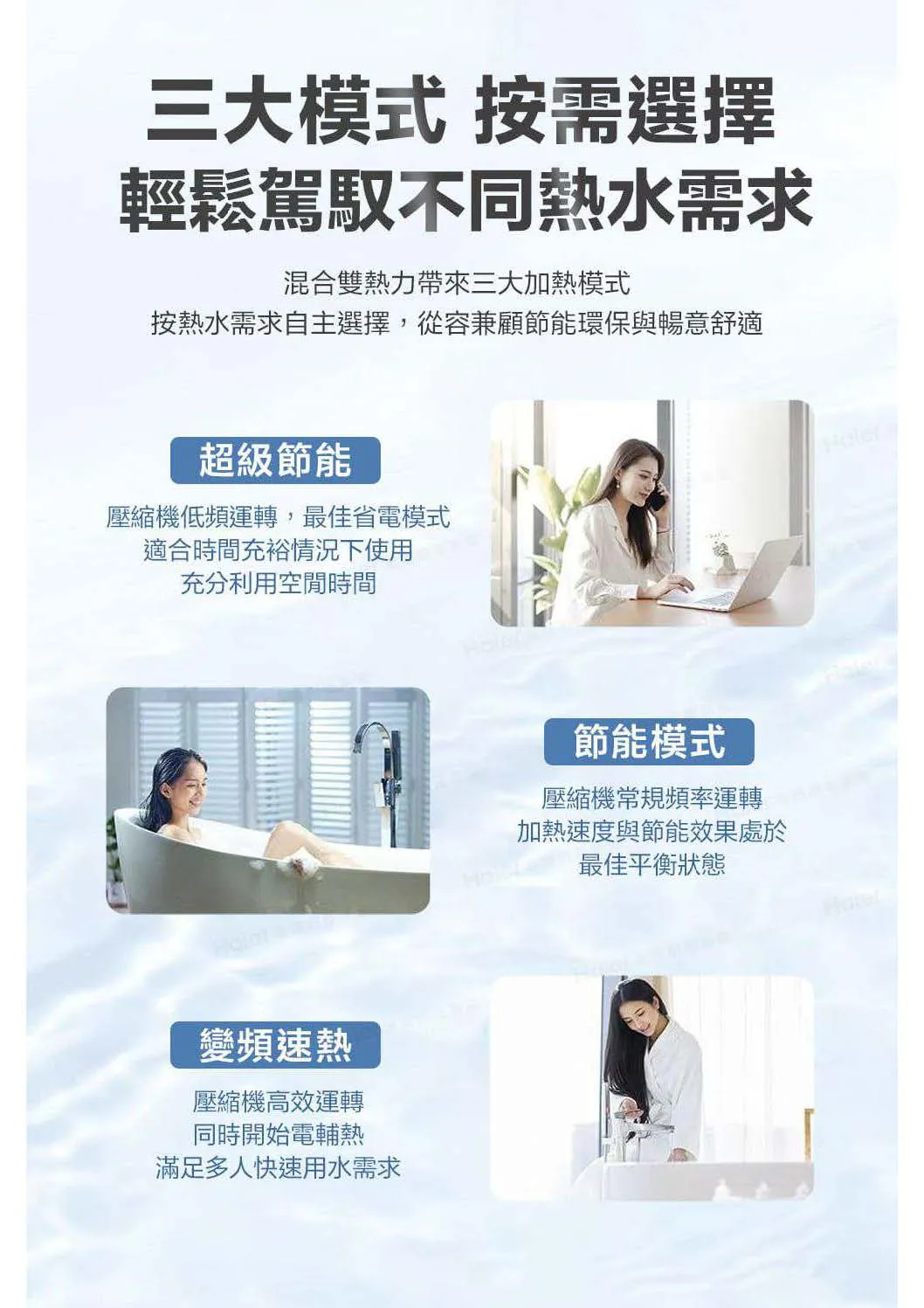 • 混和雙熱力3大加熱模式:按熱水需求設定選擇,節能又環保