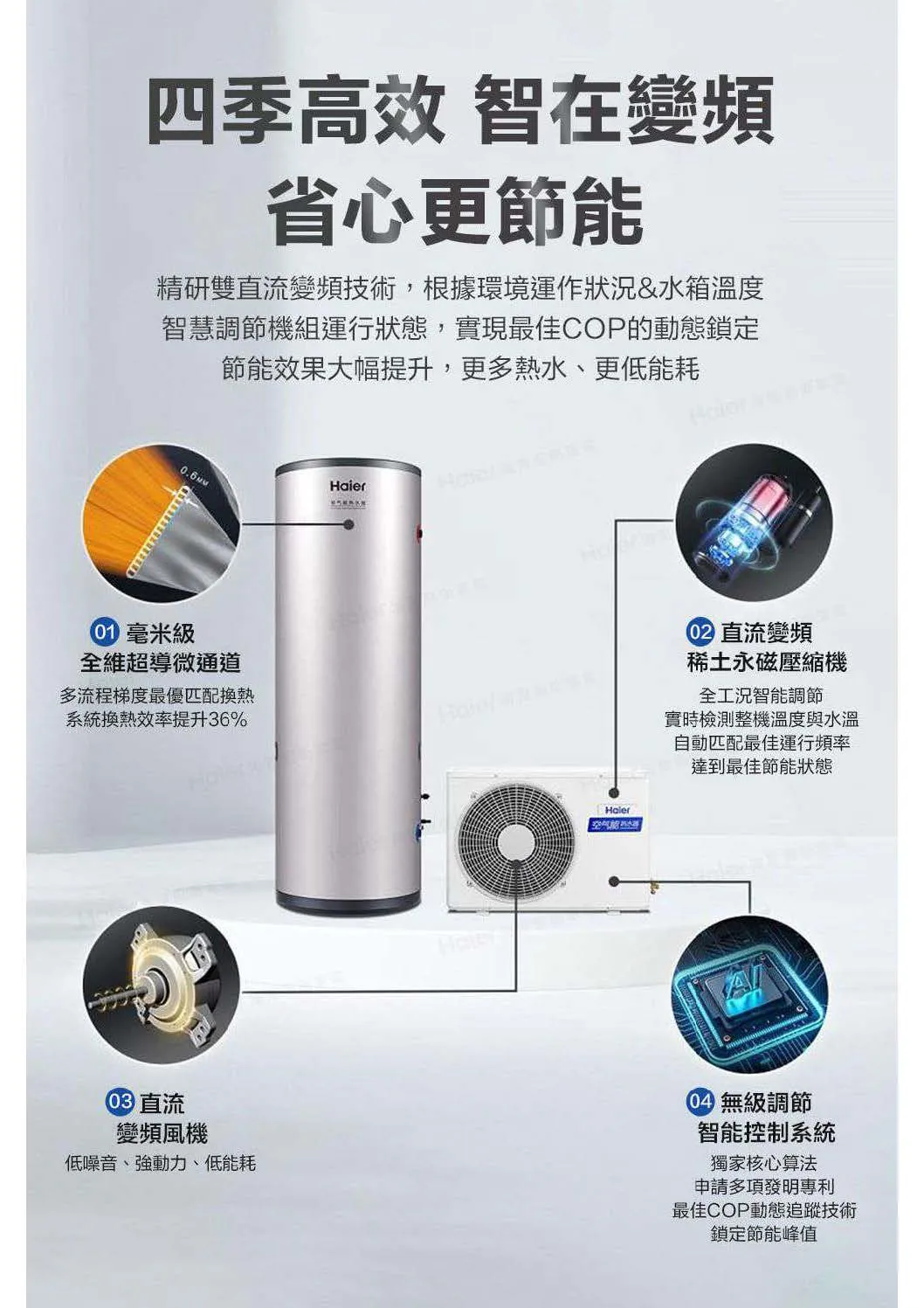 • 熱泵專用全直流變頻壓縮機:性能全盤優化升級,節能效果大提升