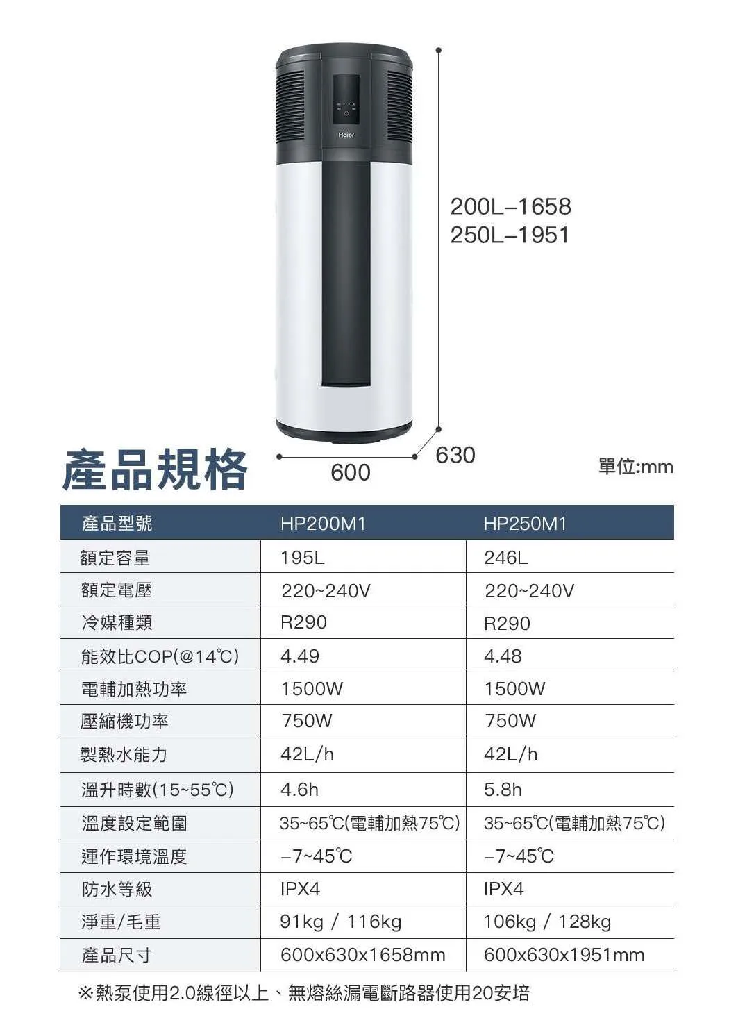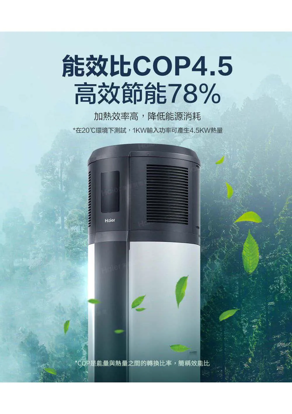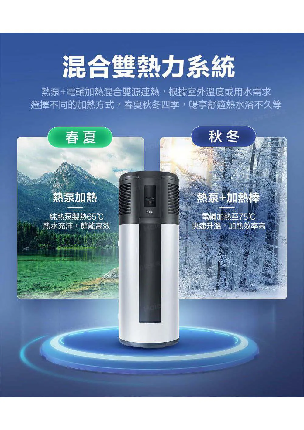 • 混和雙熱力系統:電熱輔助與熱泵雙熱力,節省等待時間