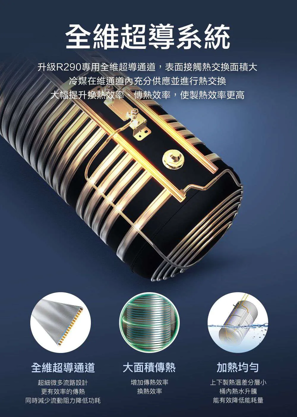 • 全維超導系統:雙效加熱製熱快,換熱效率更提升、更節能
