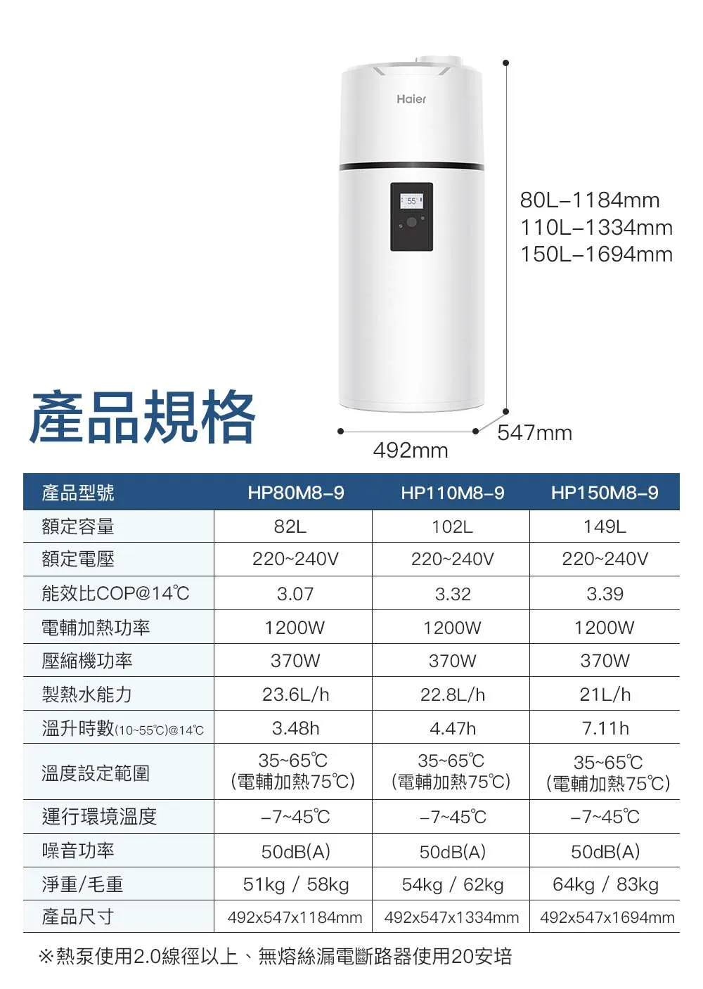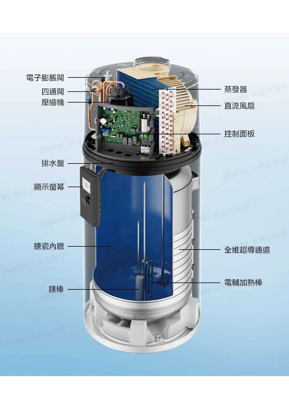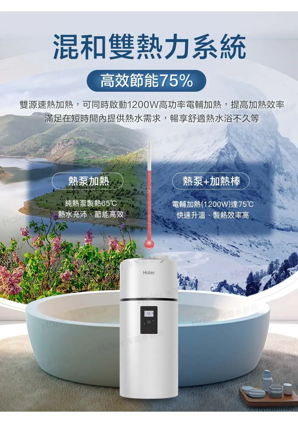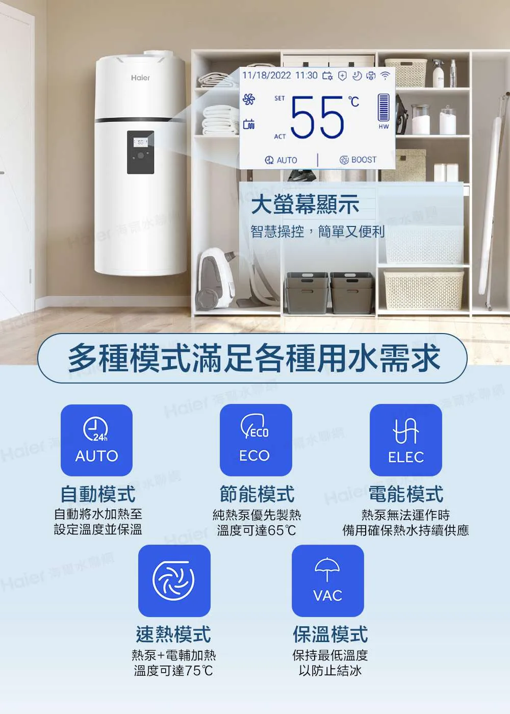 • 混和雙熱力系統:電熱輔助與熱泵雙熱力,節省等待時間